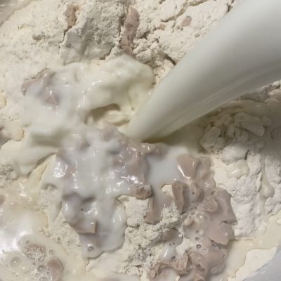 Varm melk og vann til det blir lunka/fingervarm. Pass på at den ikke er for varm, da kan gjæren bli ødelagt. |